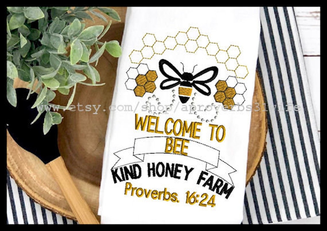 Welcome To Bee Kind Proverbs 16 24 Embroidery Design Honeybee Etsy New Zealand