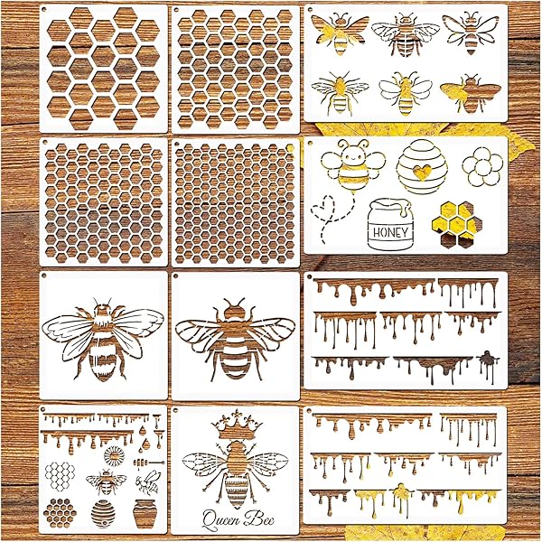Amazon Com 12 Pieces Bee Stencil Template Honeycomb Honey Stencils Reusable Mylar Diy Bee Sweet Template Welcome To Our Stencils For Painting On Wall Home Wood 6 X 6 Inch Arts Crafts Sewing